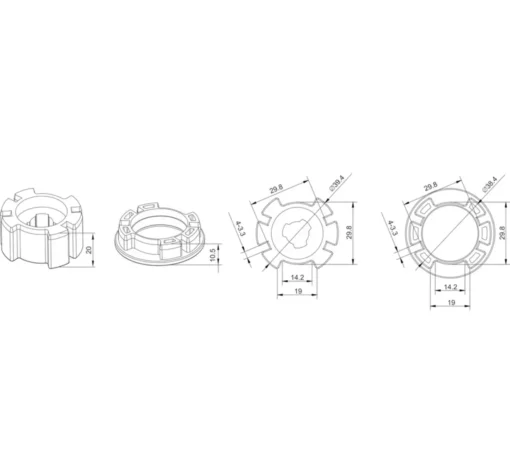 The Alpha A2205 Crown and Drive for 30mm Motors is an internal mechanical component designed for use with Alpha 30mm tubular motors. It forms the critical connection between the motor shaft and the roller tube, allowing the motor’s rotation to be transferred smoothly to raise and lower the blind.