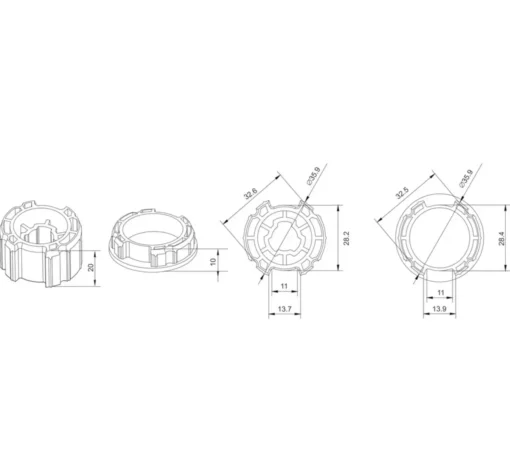 This crown and drive assembly consists of a crown that fits securely onto the motor head and a drive component that engages with the roller tube. Together, they ensure correct tube alignment, consistent torque transfer, and quiet operation across a wide range of motorised blind systems. The Alpha A2208 Crown and Drive for 30mm Motors is suitable for both new motorised blind installations and the conversion of existing manual blinds.